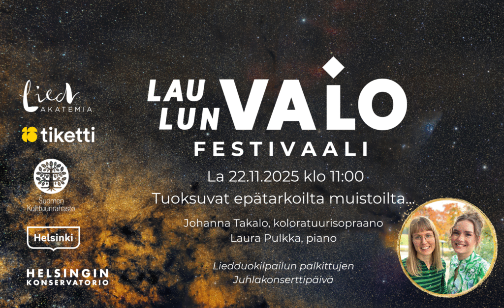 Lied-musiikkiin keskittyvä festivaali 13.-22.11.2025 Helsingissä.